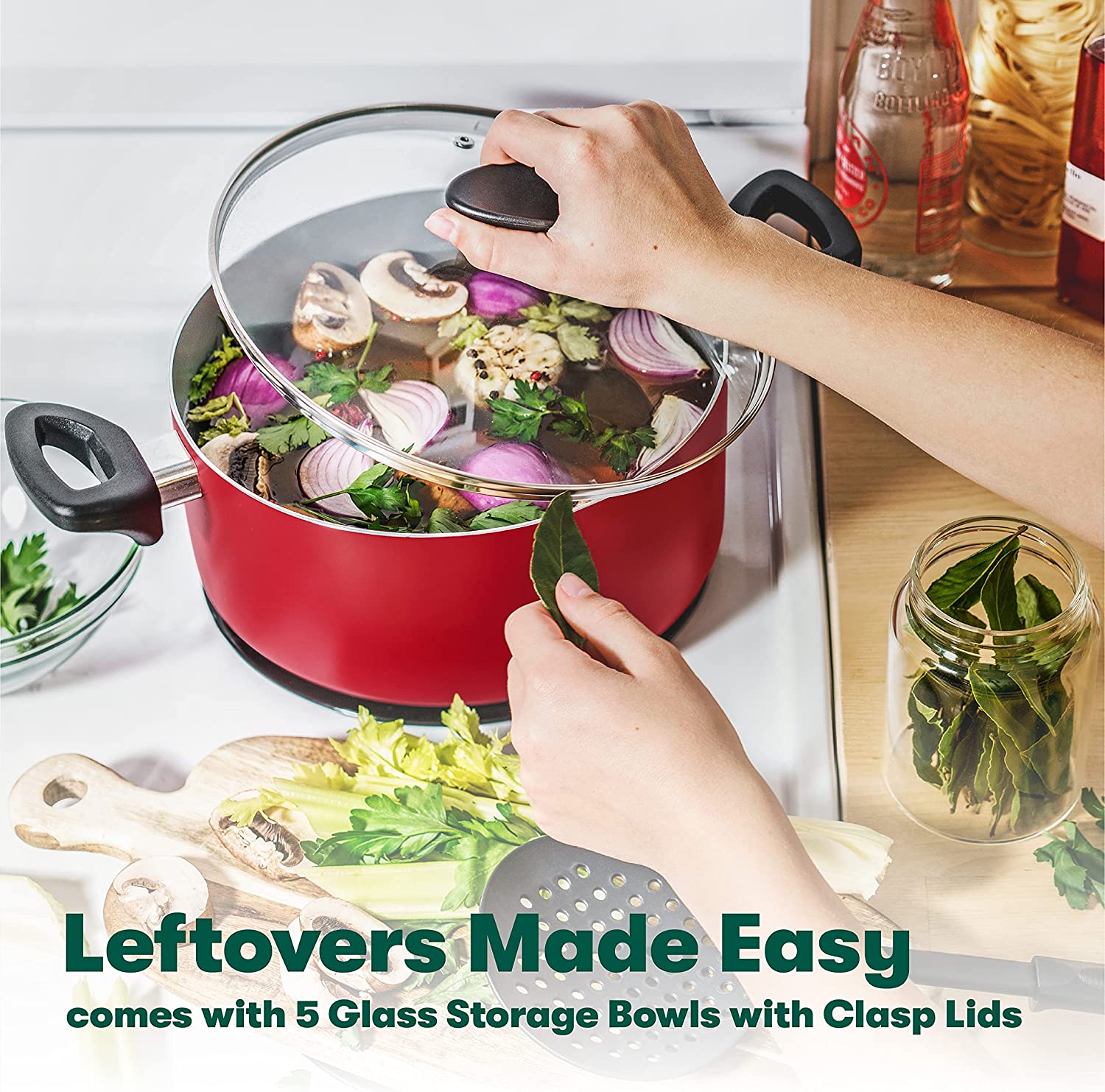 12 Piece Cook Bake and Store Kitchen Essentials Set, Red